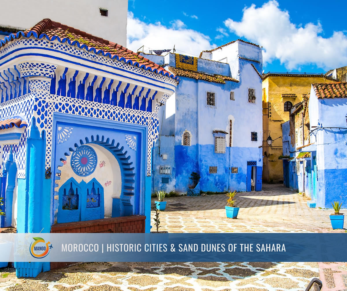 Morocco — where history, vibrant cultures, and tantalizing flavours meet across breathtaking landscapes, ancient cities, and bustling souks. Immerse yourself over 12 unforgettable days, exploring epic sites like the Roman ruins of Volubilis and the iconic Kasbah Ait Ben Haddou. Feel the magic of the Sahara as you ride a camel across golden dunes, and connect with local communities steeped in centuries-old traditions. Wander Chefchaouen’s dreamy blue streets, dive into the lively medinas of Fes and Marrakech, and savour Morocco’s rich flavours through hands-on, community-led experiences. Let the warmth and passion of Morocco’s people leave a lasting mark on your journey.