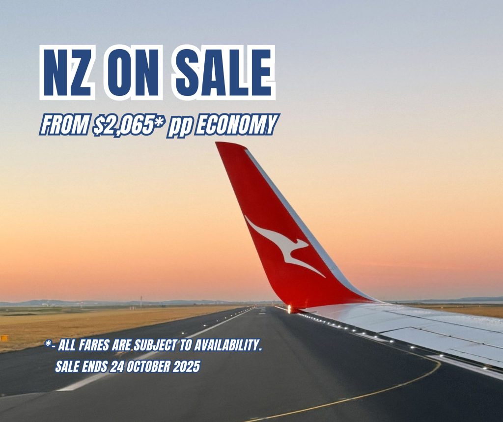 Auckland / Wellington / Christchurch with Qantas (via Sydney), return