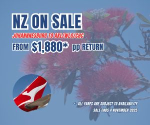 Johannesburg to Auckland / Wellington / Christchurch with Qantas (via Sydney), return